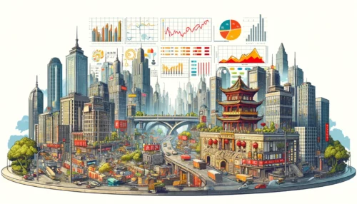 DALL·E 2024-04-11 15.03.45 – Create a detailed cartoon-style illustration in a rectangular format that intricately combines a conceptual representation of the Chinese real estate